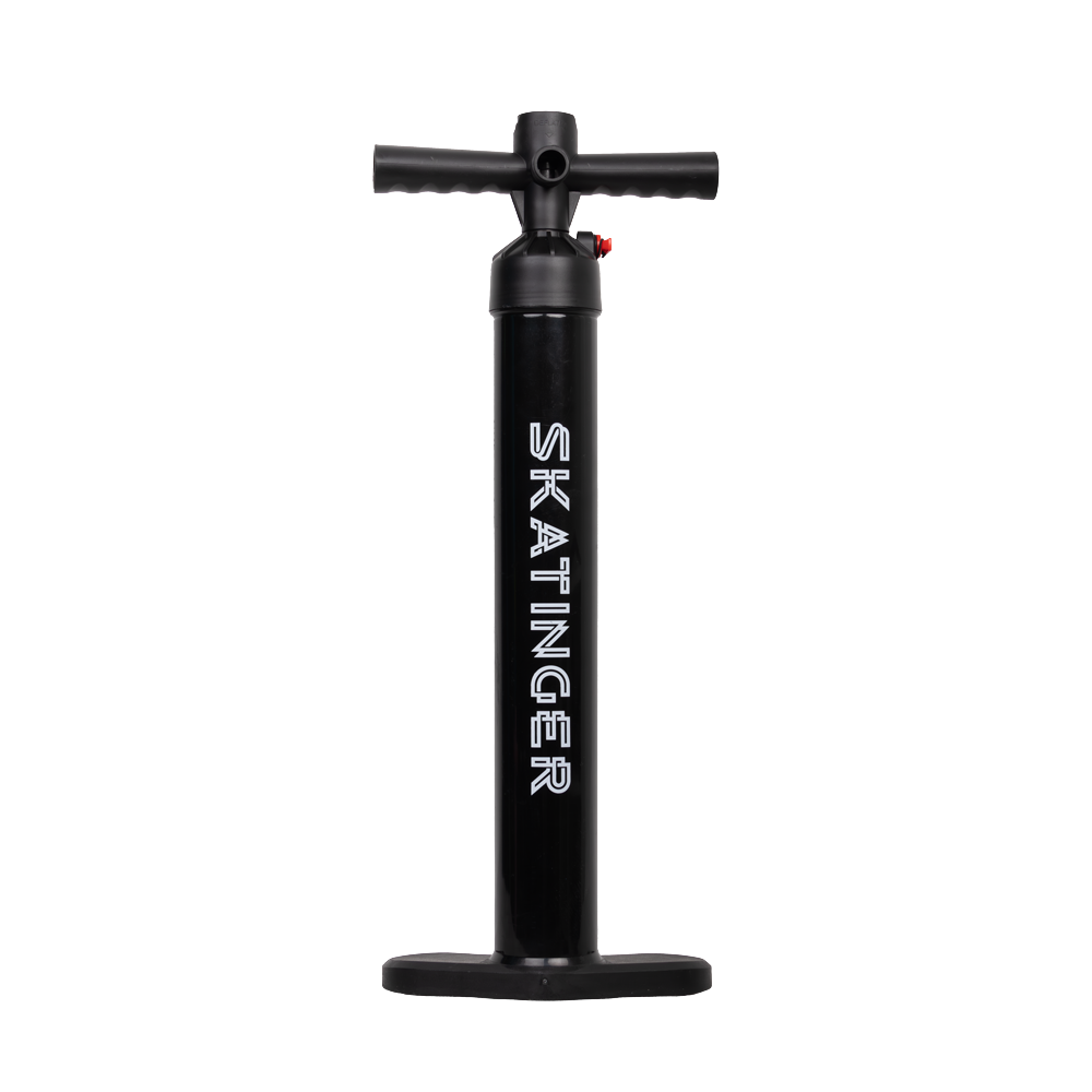 The Skatinger pump allows you to quickly and easily inflate your SUP board to the optimum pressure for it, and then pump the air out at the end of the activity. It has two pumping modes - a dual mode to quickly inflate your SUP to 9 psi, and a single mode to inflate your board to a maximum of 15 psi. The built-in pressure gauge allows you to monitor the pressure level and lets you know when it has been reached. The Skatinger pump is lightweight, compact and easy to use.